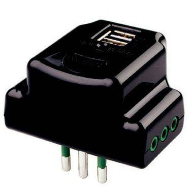 ADATTATORE ELETTRICO SPINA TRIPOLARE ITALIANA 10A CON 3 PRESE TRIPOLARI ITALIANE 10A E 2 PORTE USB 5V 2,1A NERO