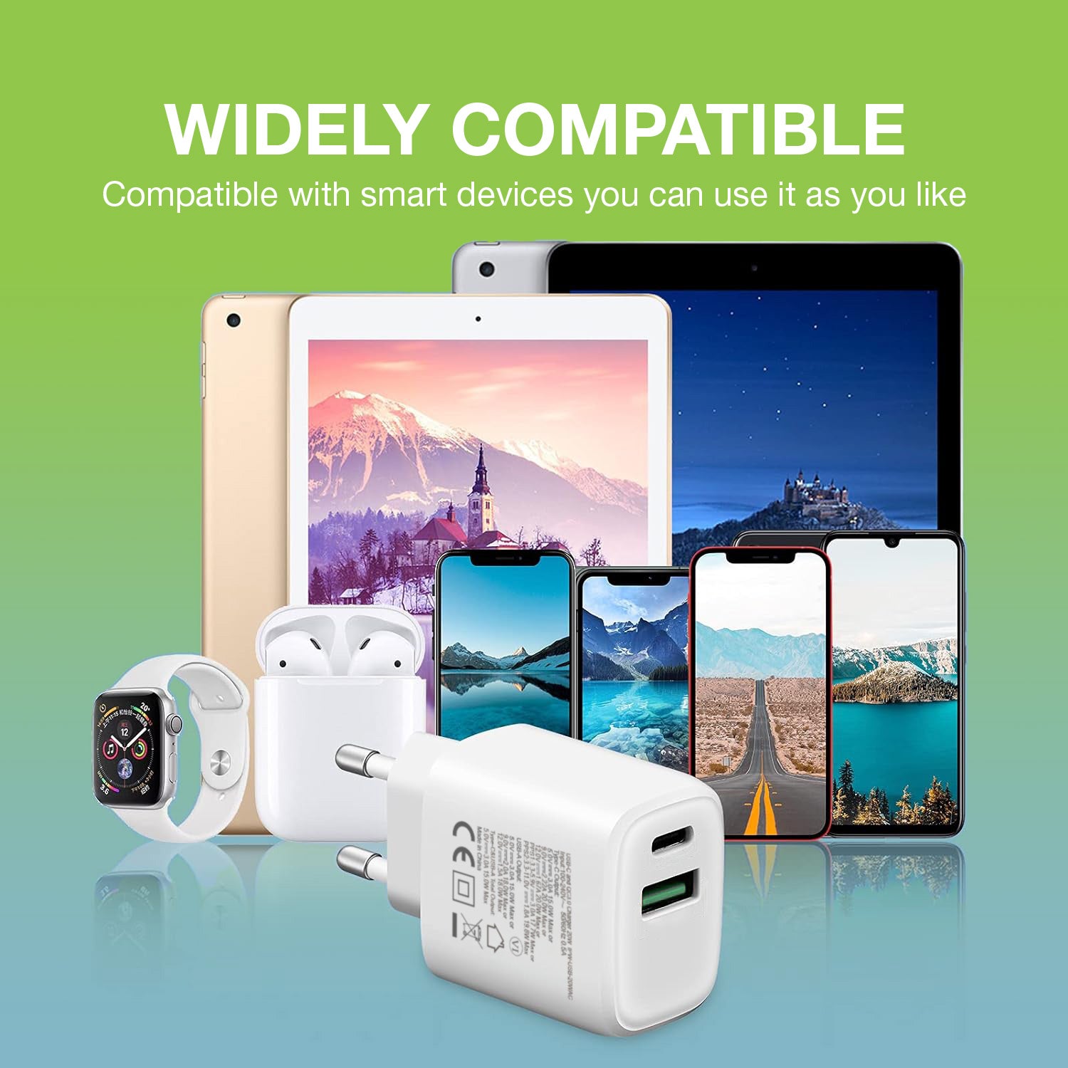Caricatore Alimentatore GaN USB-C 20W e USB-A 18W da Muro