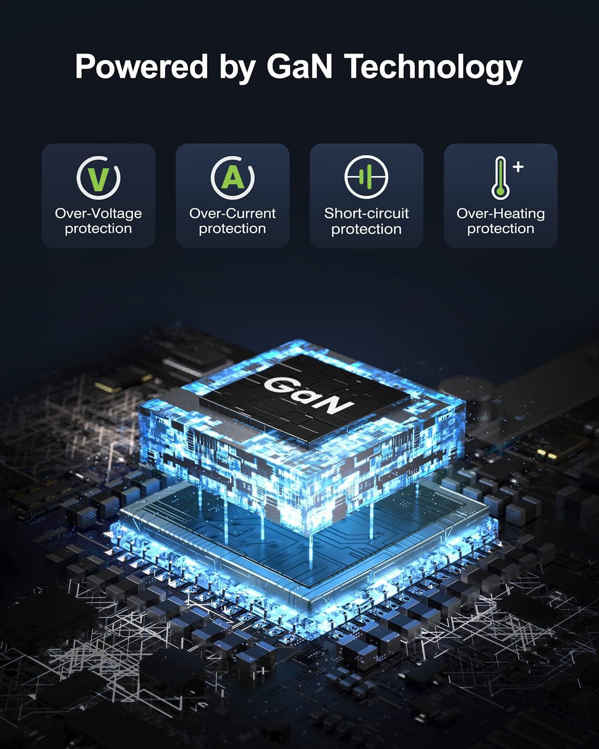 Con l ultimo chip intelligente GaN, questo caricabatterie USB-C™ è in grado di regolare in modo intelligente il consumo energetico ed aumentare l efficienza di ricarica. Il materiale ignifugo in policarbonato protegge il dispositivo anche da sovracorrente, sovratensione, surriscaldamento e corto circuito