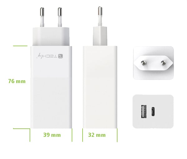 - USB-C™ + USB-A: PD 65W + QC 18W