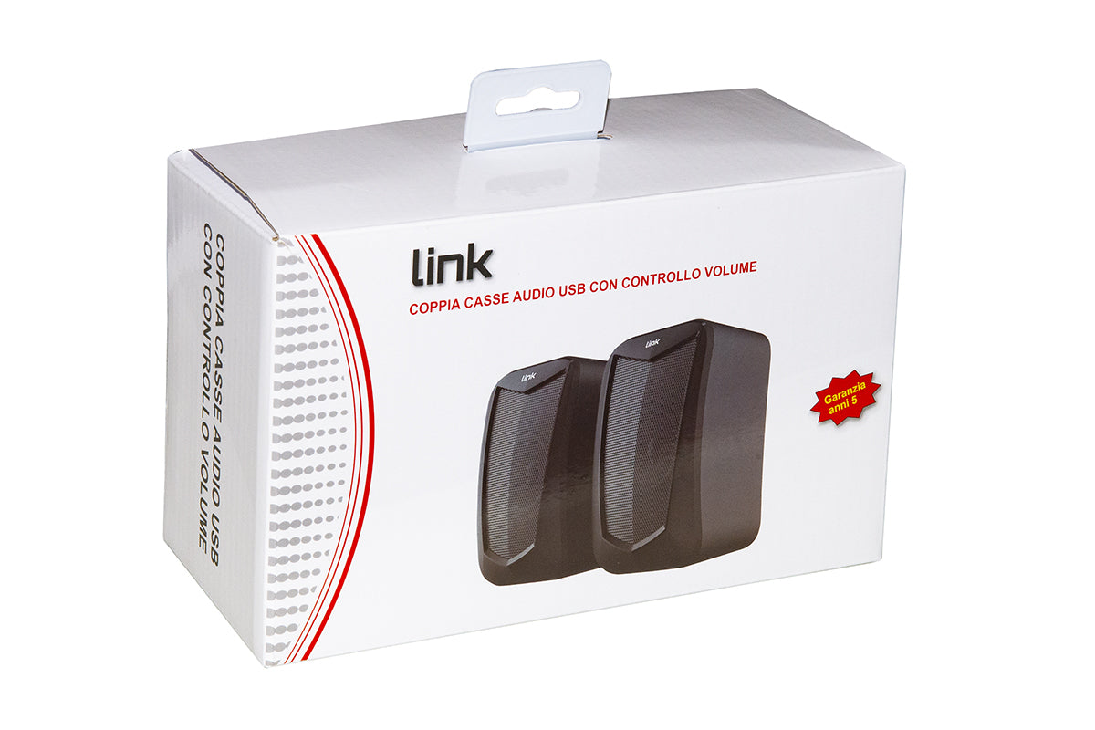 Coppia casse audio USB con controllo volume.Sono leggere e di piccole dimensioni, in questo modo si possono usare in mobilità.Si possono usare con PC, notebook, tablet, smartphone o altri dispositivi con connettore audio 3.5mm.Il suono è di buona qualità e sono semplici da usare e da posizionare.Buona potenza e buona chiarezza del suono, di certo superiore alla maggior parte di casse di questa fascia di prezzo Si alimentano tramite porta USB, tramite un caricabatterie per smartphone, o da una porta USB, non necessitano di alimentatore esterno.Connettori: USB maschio e connettore jack audio 3.5mm maschio.CARATTERISTICHE Con amplificatore classe D integrato.Canale: 2.0 stereo.Potenza in uscita 5 watt.Dimensioni: cm 11,5 (A) x 8 (P) x 6,5 (L) Peso: 0.37 kg.Impedenza: 2 Ohm Potenza in uscita: 5 watt Colore nero Frequenza 90 Hz-20Khz Sensibilità: 80db +/- 3 dB SNR: >80 dB Distorsione: <0.3%