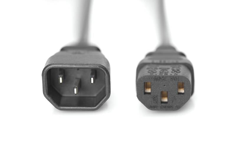 Questo cavo elettrico è utilizzato per collegare l'unità di alimentazione del PC con il monitor laddove serve una presa di alimentazione in meno.In aggiunta si può utilizzare questo cavo come prolunga.Dettagli tecniciAssortimento: Cavi di connessione del dispositivoCapacità di carico corrente: 250V/10ACappucci: stampatoColore cavo: neroColore connettori: neroConnettore 1: Spina IEC C14Connettore 2: Connettore jack IEC C13Imballaggio: Busta in plasticaMateriale fili: CUSezione trasversale cavo: 0,75mm2Standard del cavo: H05 VV F3GSuperficie di contatto: placcata in nichel