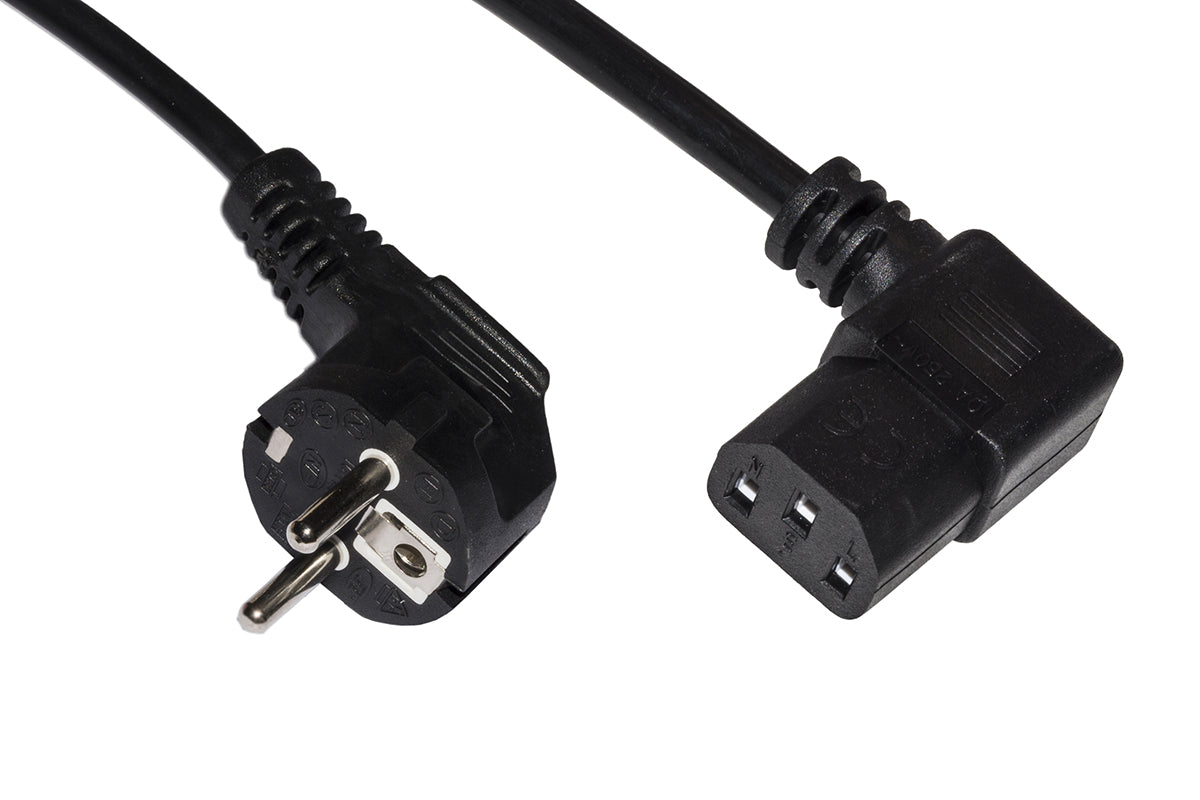 Cavi di alimentazione per dispositivi come stampanti, video o pc con spina tedesca Schuko e presa IEC 320 C13, metri 1.80 Collegamento 1: Schuko (CEE 7/7), Spina 16A piegata a 90° Collegamento 2: IEC C13, Presa piegata a 90° Carico di corrente: 250V Specifiche cavo: H05VV-F Sezione dei conduttori 0,75 mm‹ Superficie di contatto: Nichel Colore cavo: Nero Colore connettori: Nero Lunghezza: 3 mt