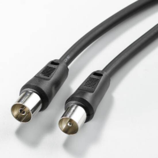 Cavi antenna per collegamento dalla TV alla presa TV a muro.Connettori maschio/femmina.Doppia schermatura, 75 ohm.Colore nero.