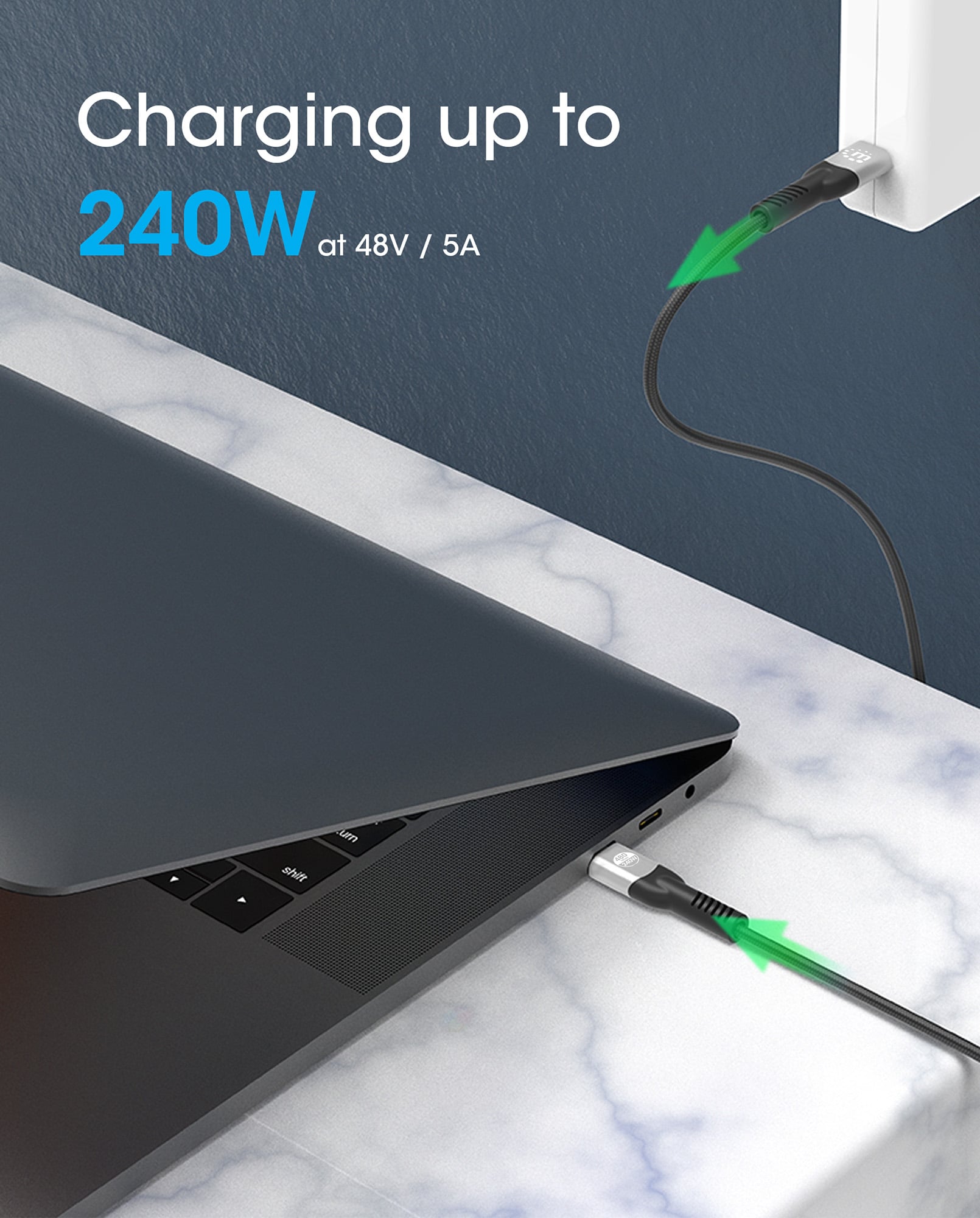 - Cavo USB Power Delivery (PD) 3.1 con Extended Power Range (EPR) ricarica fino a 240 W a 48 V / 5 A, retrocompatibile con PD 3.0/2.0/1.0