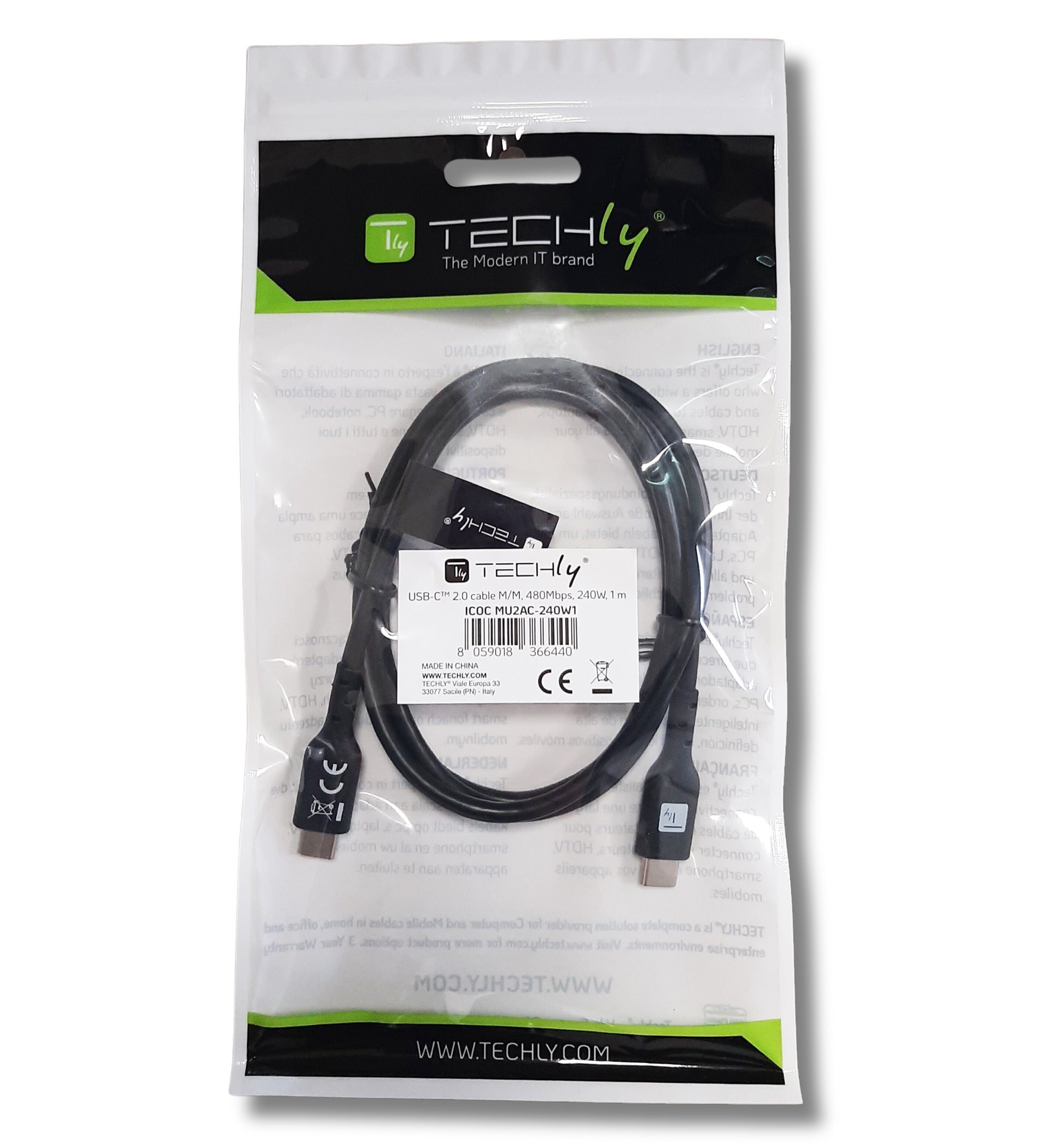 - Il cavo ICOC MU2AC-240W1ha connessioni USB-C™ maschio / USB-C™ maschio