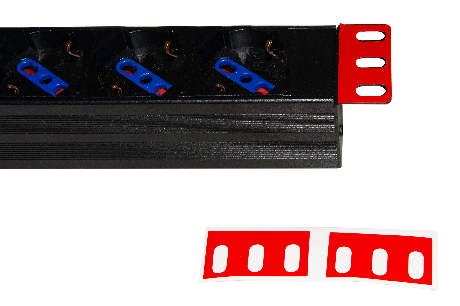 Coppia adesivi colore rosso per le alette laterali delle multiprese rack 19'Il colore rosso identifica la multipresa come collegata a un gruppo di continuità, facilitandone così l'identificazione durante le operazioni di assistenzaLe etichette possono essere poi rimosse in caso di cambio di destinazione della multipresa