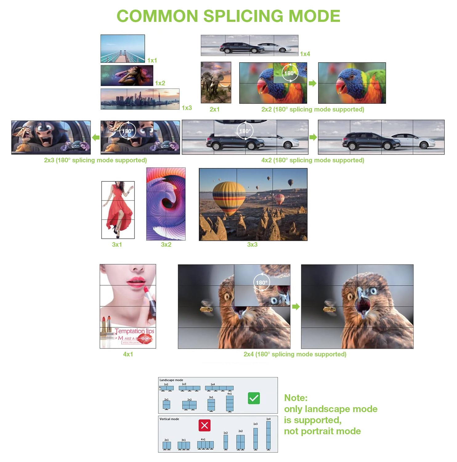 - Supporta una varietà di modalità di visualizzazione come 1x2/1x3/1x4/2x2/2x3/3x2/2x4/4x2/3x3