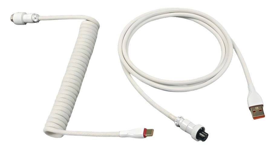 Coppia cavi Aviator USB di alta qualita' per tastiera.Si possono collegare da soli, sono particolarmente utili nel caso di installazioni dove si colleano e scollegano i cavi frequentemente, diminuendo in questo modo l'usura sui connettori USB.In due parti, una dritta e una arrotolata, con connettore stile aviazione e con interno in 4 core di rame assicura una comunicazione perfetta e una ricarica rapida (supporta ricarica rapida da 20w).Collegati tra loro, diventano un normale cavo USB-C - USB A.Disponibile in varie colorazioni anche abbinabili alle nuovissime tastiere Gasket Cortek.Aviator cable USB 2.0 da tipo A a tipo C 24AWG.Cavo 1: connettore USB A - Connettore Aviator 4 poli femminaCavo 1: connettore USB-C - Connettore Aviator 4 poli maschioFunctioni: Ricarica rapida da 20W e trasferimento dati, collegamento tastiere gaming con connettore USB-CVoltage 5V/2AConduttori in rame a 4 conduttoriLunghezza 1.80 (3.00 steso)