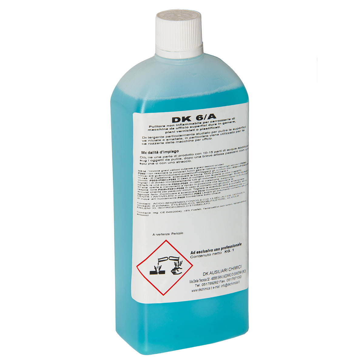 Detergente liquido non infiammabile per plastica e metallo, di può utilizzare direttamente sulle superfici e anche in diluizione con acqua (concentrazione minima consigliata 10%).Soluzione a base acquosa di tensioattivi anionici e non ionici biodegradabili e attivatori organici e inorganici. Pulisce senza intaccare o danneggiare plastica, gomma, plexiglass, guarnizioni, superfici laccate o metallo, anche verniciato.Il prodotto è biodegradabile, non è bioaccumulabile.