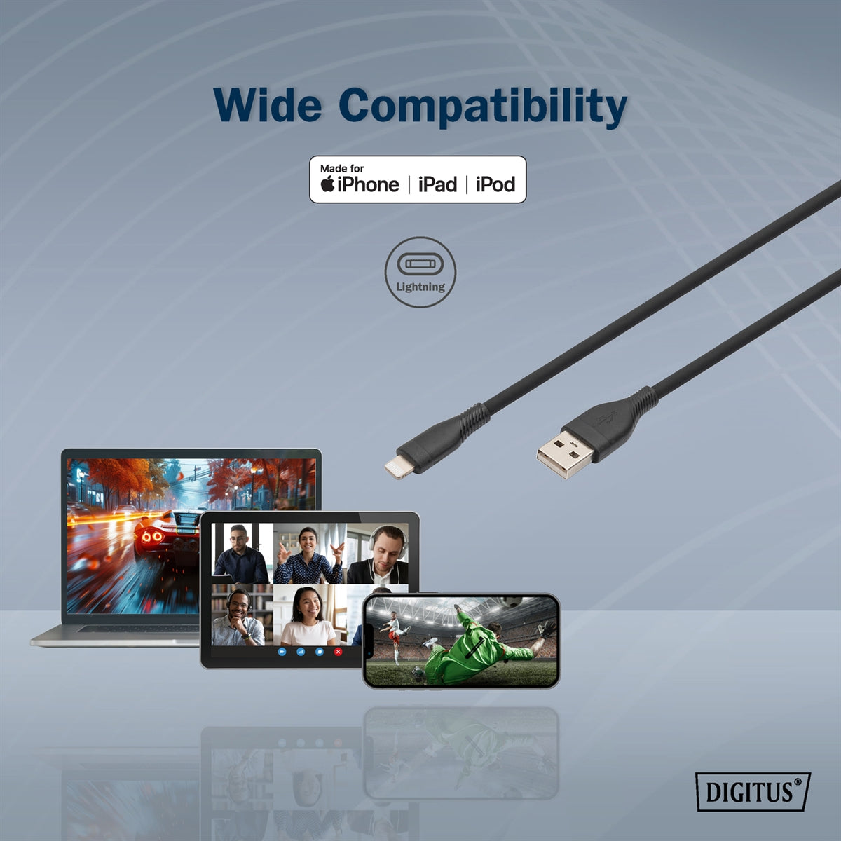 DIGITUS Cavo di collegamento in silicone Lightning,USB-A - Lightning 0,5 mt,nero