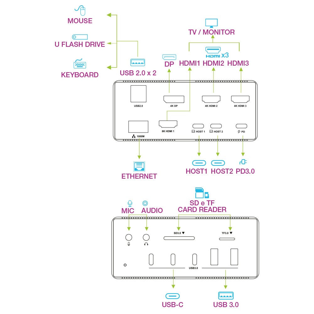 Docking Station 19 in 1 USB-C 8K HDMI 4 Uscite Video