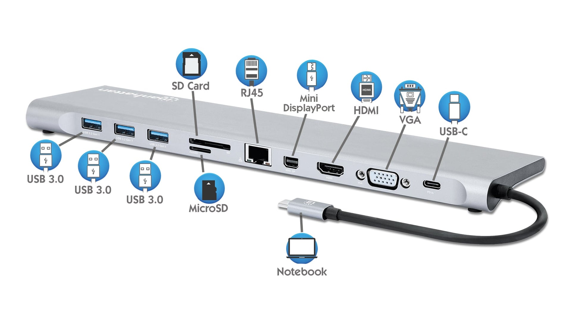 - Supporta funzione USB Power Delivery (PD) fino a 100 W; richiede un caricatore esterno PD - disponibili tra i prodotti Manhattan