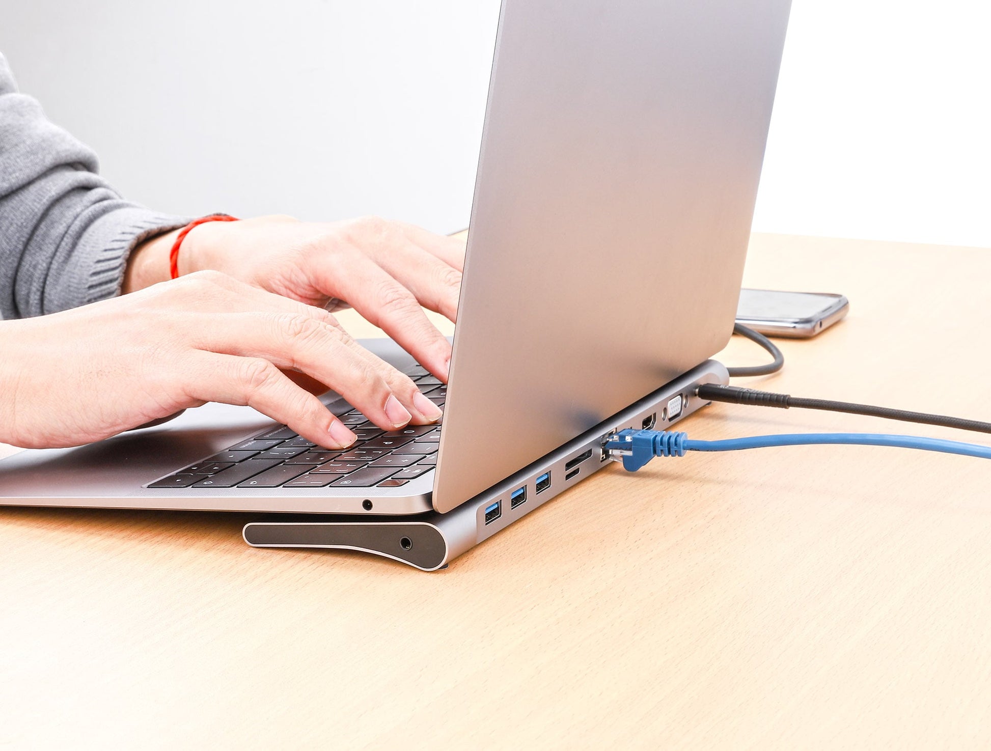 - Con robusto cavo integrato a 18 cm con connettore rivestito in alluminio, perfetto per notebook con porta USB-C™ nella parte sinistra