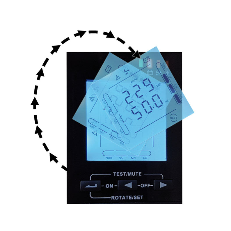 Potenza nominale 3000 VA – 2400 W Forma d’onda uscita 100% sinusoidale Controllo digitale DSP Stabilizzatore di tensione AVR Funzione Wide Range Input – Forma d’onda uscita 100% sinusoidale– Controllo digitale DSP – Stabilizzatore di tensione AVR – Funzione Wide Range Input– ampia tolleranza sulla tensione di ingresso senza intervento da batteria– Riconoscimento automatico frequenza ingresso e selezione frequenza uscita conseguente (50-60 Hz) – Possibilità di funzionamento con alimentazione da generatore – Funzione Auto Switching – accensione automatica in presenza di corrente elettrica (settabile) – Funzione Auto Restart – ripristino automatico a ritorno di rete (settabile)– Funzione Cold Start – possibilità di accensione da batteria – Possibilità di settaggio corrente di ricarica batteria e tensione fine scarica – Settaggio tensione fine scarica batterie (riserva di carica)– Ricarica delle batterie anche da UPS spento – Funzione risparmio energetico possibilità di settaggio in modalità batteria con carico <3% (settabile) – Funzione spegnimento del carico, possibilità di settaggio in modalità batteria con carico <3% (settabile) – Tacitazione automatica e manuale allarme acustico – Protezioni: corto circuito, sovraccarico, sotto tensione / sovraccarico batterie -Pannello frontale a LED e LCD (tensione/frequenza ingresso, tensione/percentuale livello batteria, tensione/frequenza uscita, misure W/VA carico, temperatura) – Protezione rete telefonica tramite connettore RJ45 -Porta USB e slot per schede SNMP o AS400 (optional) – Peso e dimensioni ridotte – Mantello in metallo – Tower e Rack