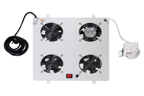 KIT Dl VENTOLE PER RACK 19'' CON TERMOSTATO DIGITUS Raffreddano in maniera efficiente l'interno dell'armadio evitando il surriscaldamento dei server contenuti nell'armadio e quindi preservandoli da usura.Si installano a soffitto dei mobili rack.Fino a 19.2 metri cubi di circolazione di aria al minuto, con termostato per la regolazione della temperatura. Interruttore incluso per accensione e spegnimento.Colore grigio chiaro ( RAL7035). Le viti di fissaggio sono incluse.Basso disturbo acustico, 47 dbm.In acciaio 1.2 mm, certificazione CE, DIN EN 10130 99 EREGLI DC-01 6112 CRS