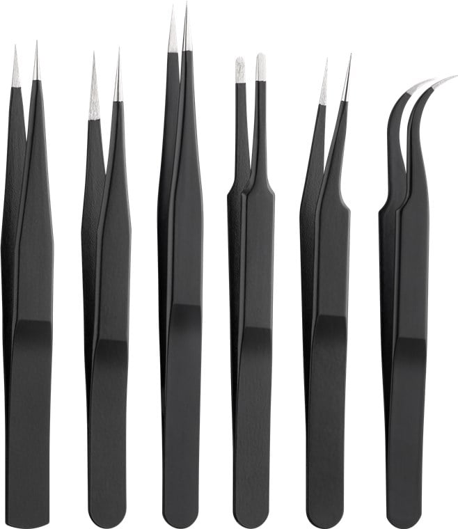 Kit 6 Pinzette di Precisione a Punta Piatta a Croce e Antistatiche in acciaio INOX