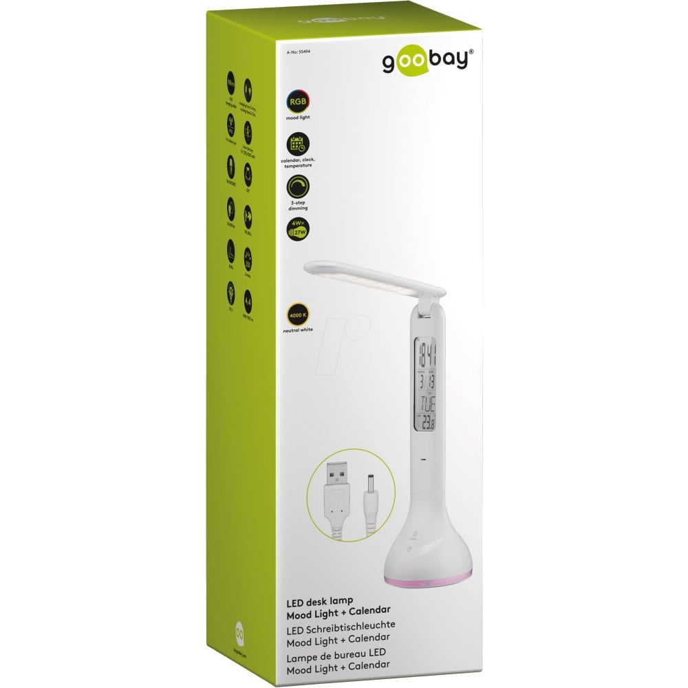 Lampada a LED da Tavolo Ricaricabile con Calendario e Orologio