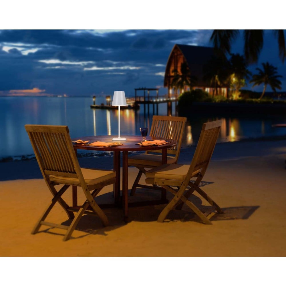 - I-LED LAMP-WH è una moderna e portatile lampada wireless da tavolo in metallo con alimentazione a batteria ricaricabile al litio