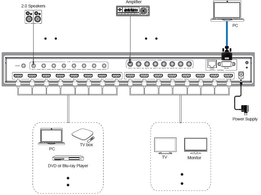 - 1x HDMI Matrix 8x8