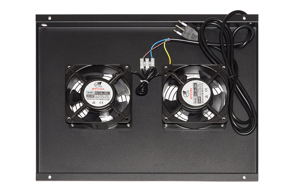 SISTEMA DI VENTILAZIONE PER RACK 19'' CON TERMOSTATO Raffreddano in maniera efficiente l'interno dell'armadio evitando il surriscaldamento dei dispositivi contenuti nell'armadio e quindi preservandoli da usura.Con 2 ventole 220 volt 120x120x38mm.Con griglia di protezione.Si installano a soffitto dei mobili rack marchio Link profondi 600 mm.Colore nero (RAL9005).Con cavo di alimentazione mt.1,80 spina tripolare italiana 10A.Le viti di fissaggio sono incluse.Misure 41X35 cm.