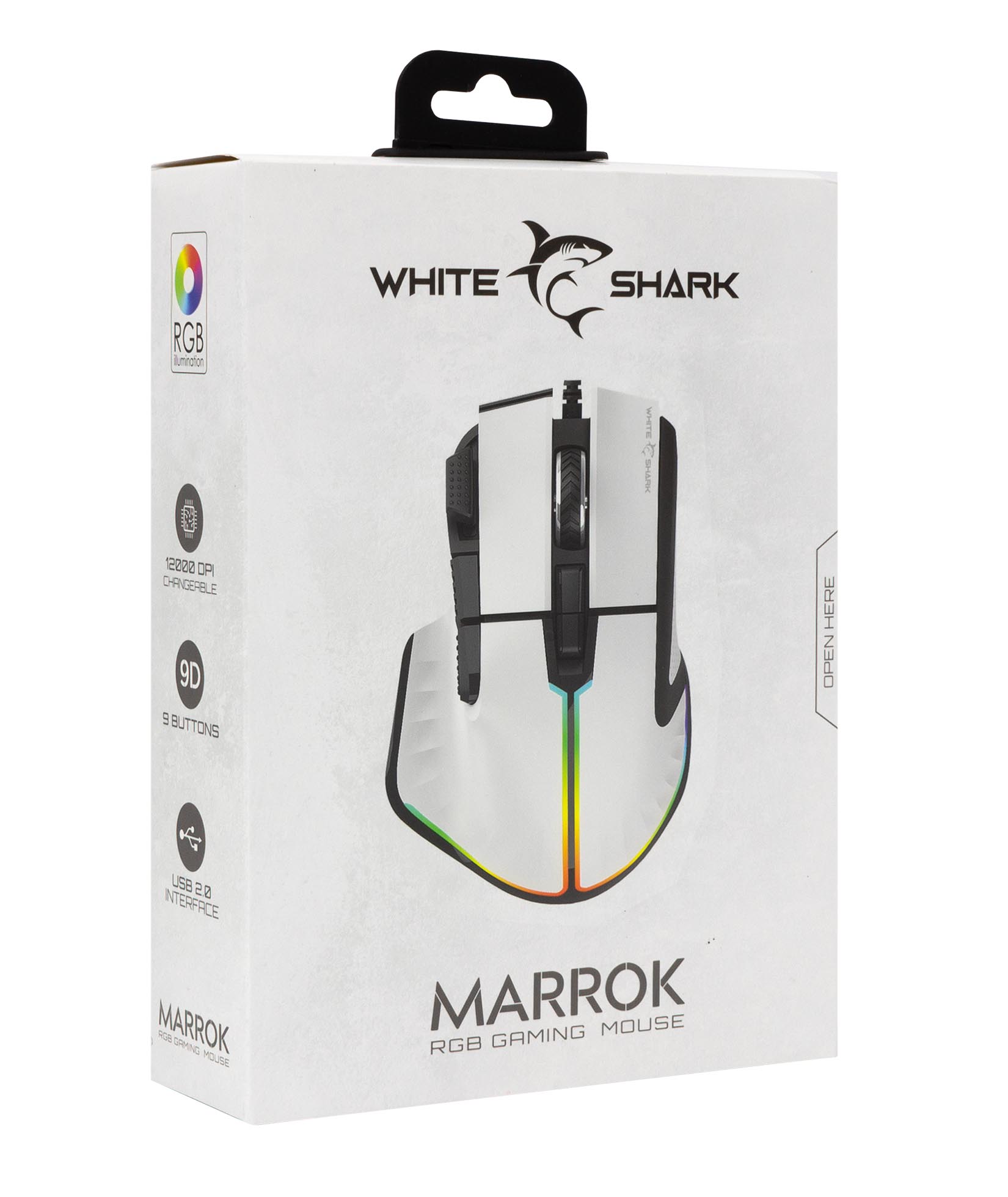 Mouse Ottico USB Gaming 12000 Dpi 9 Tasti Retroilluminazione LED RGB Bianco, MARROK