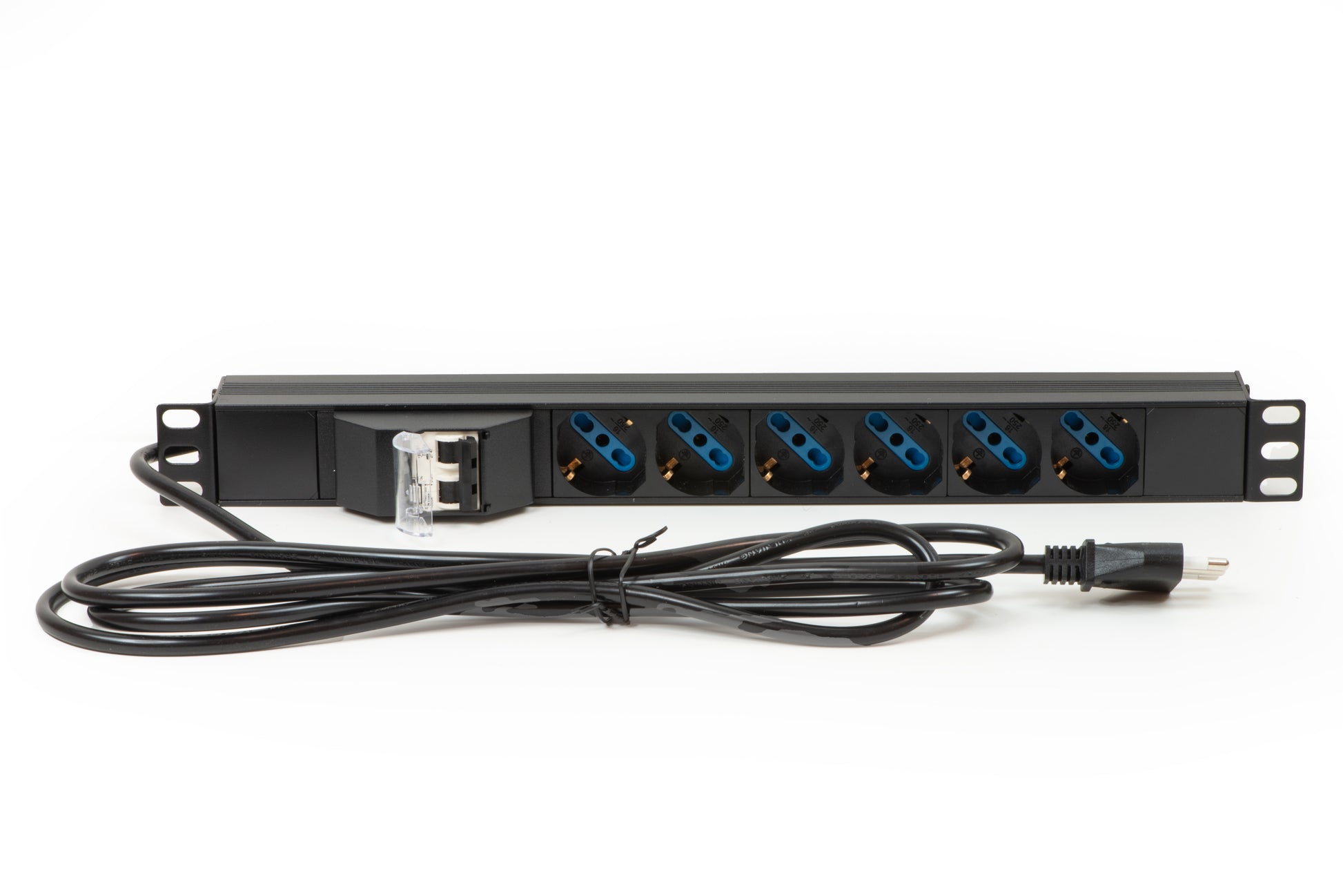 Multiprese elettriche di alimentazione con prese multiple con interruttore magnetotermico Con coperchio di protezione apribile contro lo spegnimento accidentaleCon staffe per fissaggio in armadi rack 19'' reversibiliL'interruttore magnetotermico, detto anche interruttore automatico, è un dispositivo elettrotecnico in grado di interrompere un circuito in caso di sovracorrenteSostituisce il fusibile, con il vantaggio di una maggior precisione di intervento ed essere facilmente ripristinabile con la pressione di un pulsante o l'azionamento di una levaSpecifiche cavo H05VV-F, sezione 1,5 mm Cavo mt 3 con spina tripolare italiana 16APrese universali Schuko tedesche e italiane tripolari UNEL 2P+T 16ALa disposizione delle prese a 35° permette il collegamento dei cavi spina tedesca a 90°