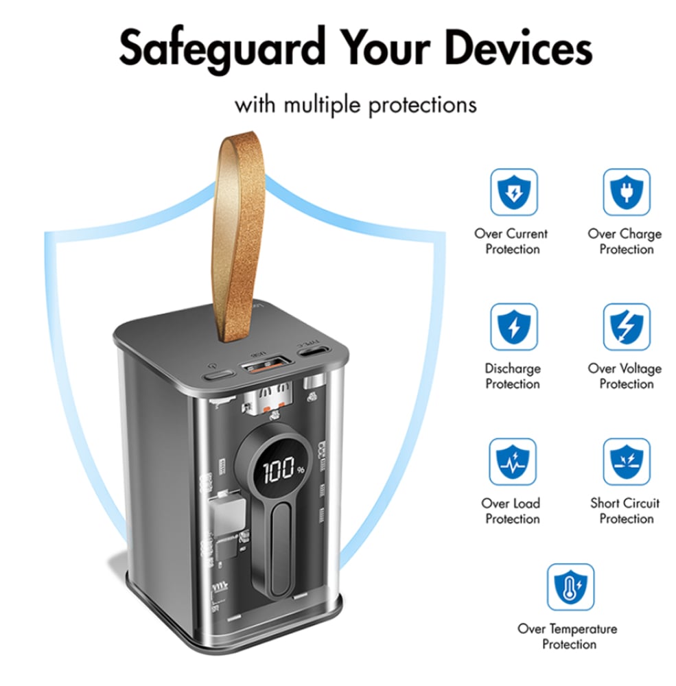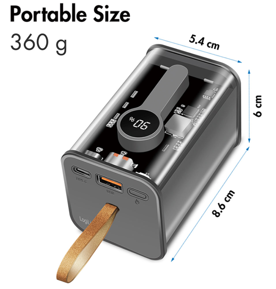 Power Bank 20000 mAh 1x USB-A 1x USB-C con Display PD & QC Trasparente