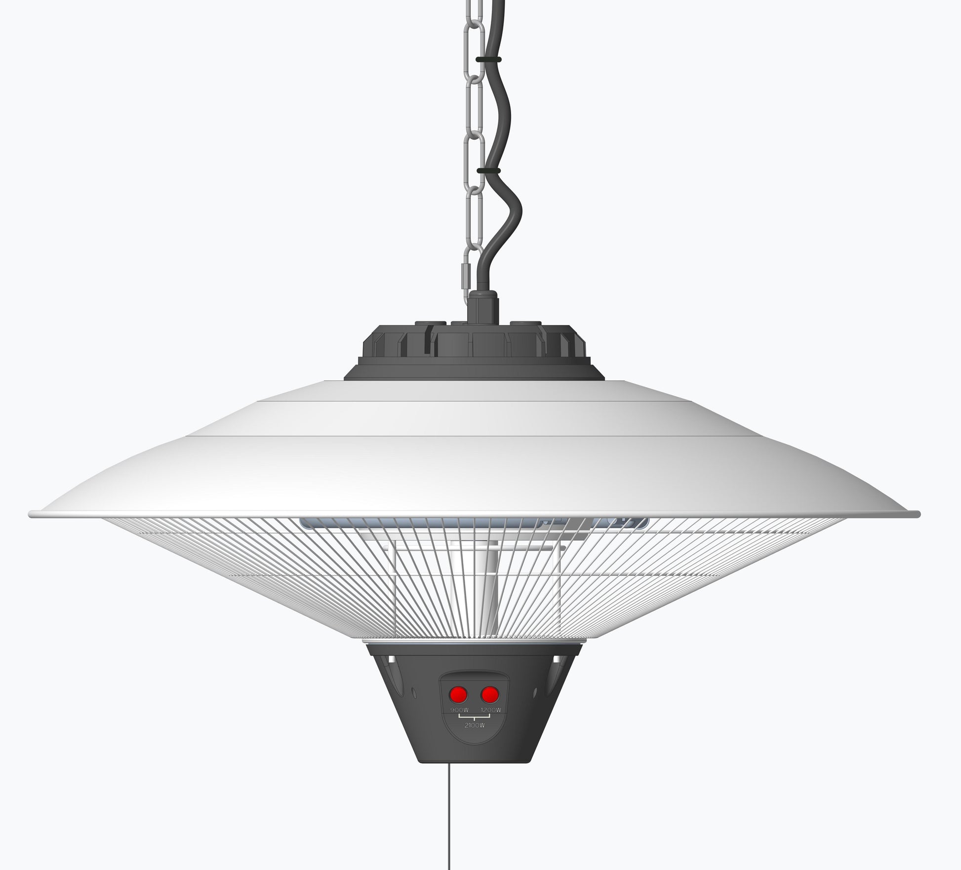- 3 livelli di temperatura regolabili: 900/1200/2100W; Selezione tramite interruttore a cordino