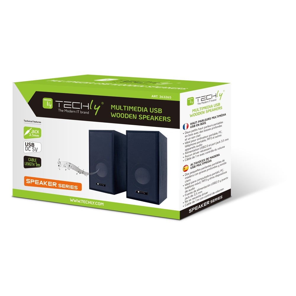 Set Altoparlanti in Legno per Notebook e PC USB2.0 e Jack 3,5mm