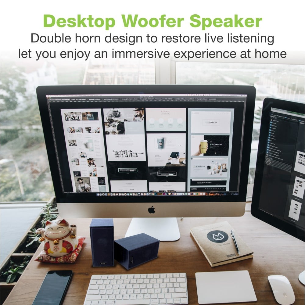 - Due piccoli altoparlanti portatili in legno con bassi profondi e suono chiaro