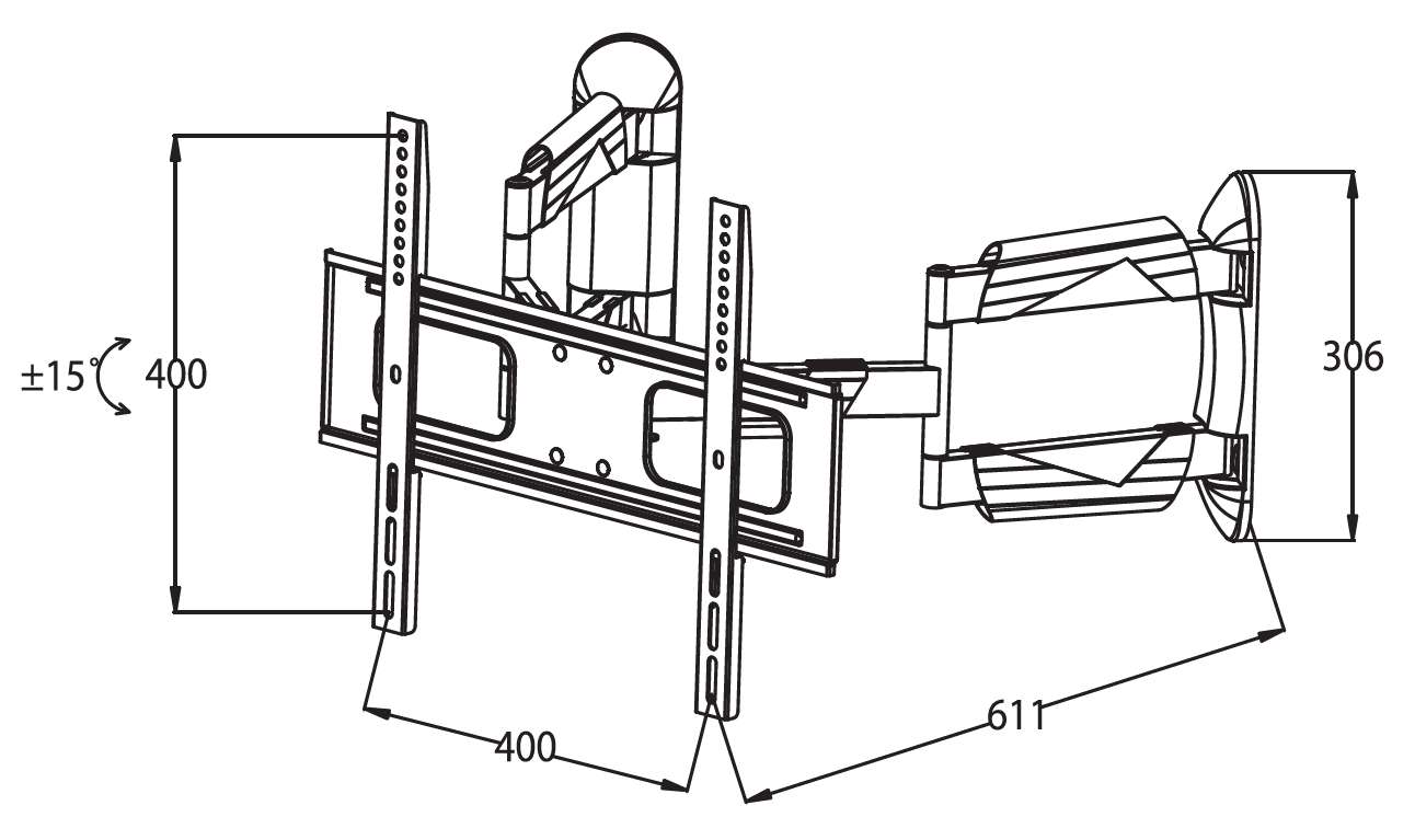 Staffa per installare a parete monitor e TV LED o LCD da 23'' a 47'', con possibilità di regolare l'angolo di visione verticale e orizzontale, anche in lunghezzaI suoi bracci doppi permettono l'installazione della TV anche nell'angolo di un muro o in posti disagevoli, oltre che nelle normali paretiIn acciaio, molto robusta, supporta un peso fino a 50 kg Per schermi standard VESA 75x75, 100x100, 200x200, 400x400Con 3 snodi, permette di orientare la TV nella posizione desiderataInoltre si può regolare in verticale +15°/-15° per posizionare il monitor nella posizione desiderataI suoi due bracci permettono l'installazione anche di TV molto pesanti, anche a distanza, il profilo è di 61 cmLe viti e i tasselli per l’installazione sono inclusi, l'installazione è semplice