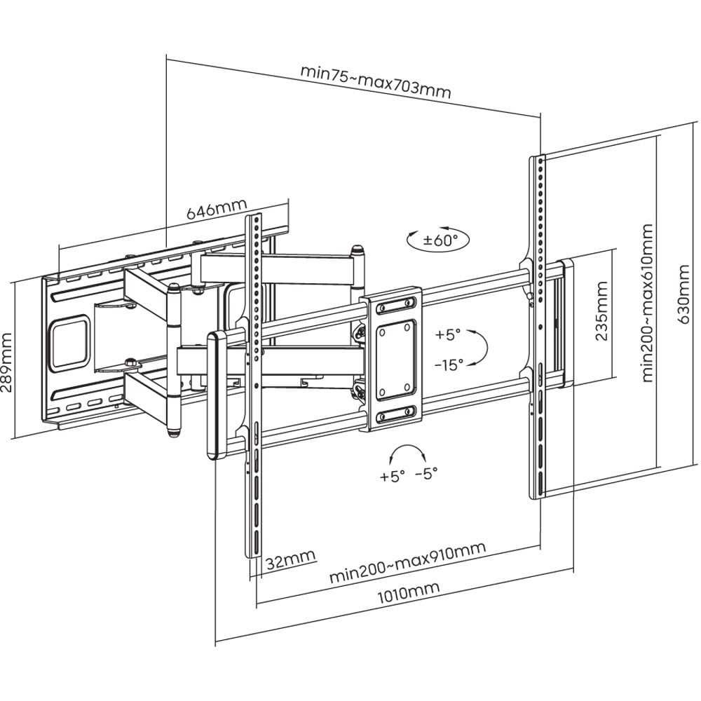 - Braccio estensibile fino a 703 mm e possibilità di rotazione di 120°