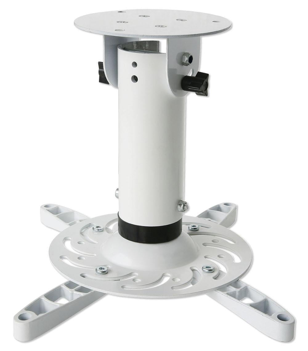 ICA-PM 200WH è un supporto a soffitto universale per proiettori fino a 15 kg. Offre un posizionamento multidirezionale con quattro bracci di supporto regolabili che possono adattarsi ad una vasta gamma di fori di montaggio. I cavi necessari al montaggio passano all’interno della colonna centrale e quindi non sono visibili. Questo supporto per videoproiettore è perfetto per l uso in aule, sale riunioni, alberghi, bar e ristoranti e molto altro.
