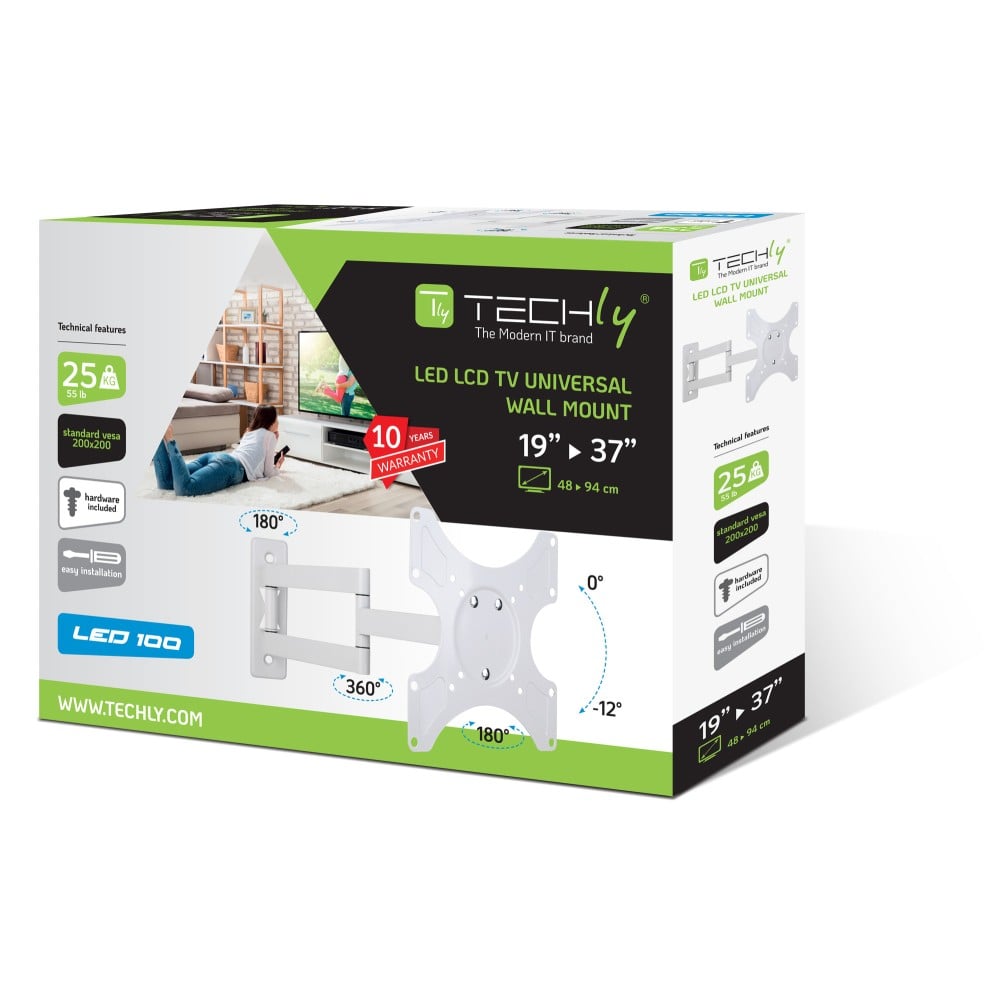Supporto a Muro per TV LED LCD 19-37'' Inclinabile 3 Snodi Bianco