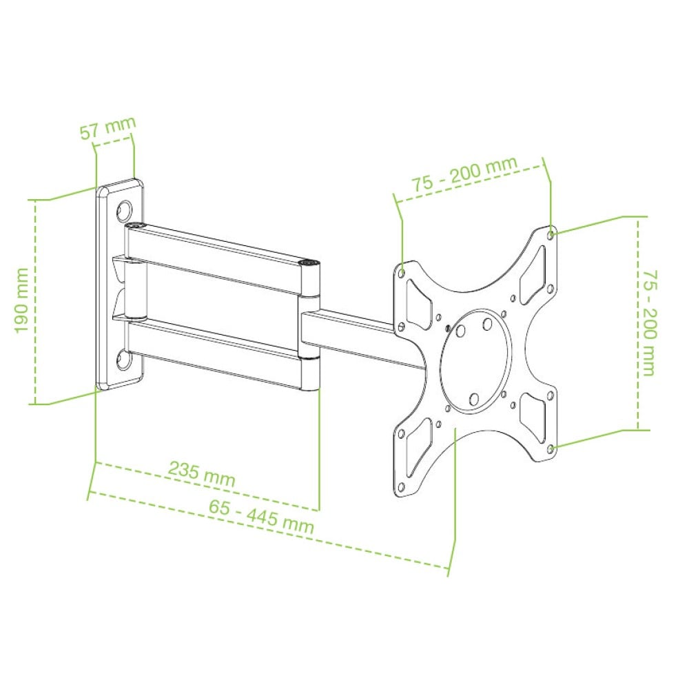 - Dimensioni: 190 x 57 mm placca a muro; 65 - 445 mm braccio, 2.2kg
