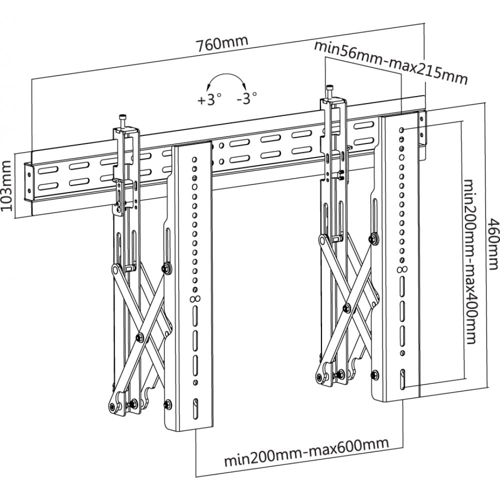 - La funzione retrattile con estensione fino a 202 mm semplifica l’installazione, la manutenzione e l’allineamento dei display, mentre la regolazione fine dell’angolo (±3°) assicura un allineamento preciso dei pannelli