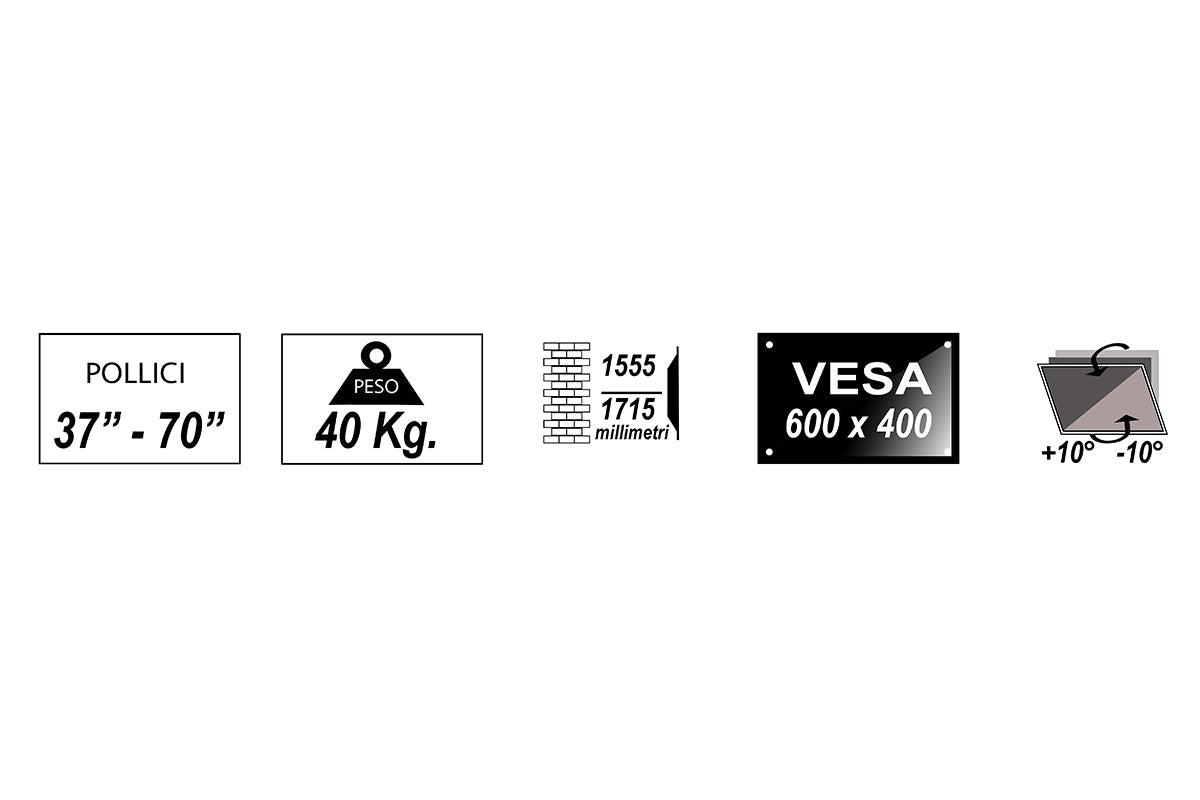 Carrello per TV 37''-70'' LED/LCD FlatQuesto supporto (piantana) per video è ideale per uso in uffici, scuole, hotel, aeroporti, laboratori, ospedali, chiese eccIl pannello si può regolare a seconda delle esigenze di visioneCon orientamento verticale +10° -10° che permette la regolazione dell'angolo di visione per ridurre il riflesso da luci o finestre ed ottenere il massimo confort nella visioneIn acciaio, la sua robustezza garantisce anni di usoL'altezza è regolabile, da 1555mm a 1715mmCon ripiano per posizionare i dispositivi audio/video regolabile (fino a 10 Kg) Con ruoteColore nero Dimensioni: 700x700x1715mm (27.6''x27.6''x67.5'') VESA: 200x200.300x300.400x200.400x400.600x400 Supporta video fino a 40kg