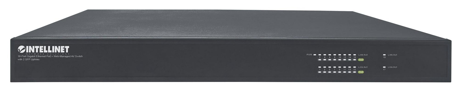 - Ethernet Gigabit Switch A/V Web-Managed 16 porte PoE+ con 2 SFP Uplinks