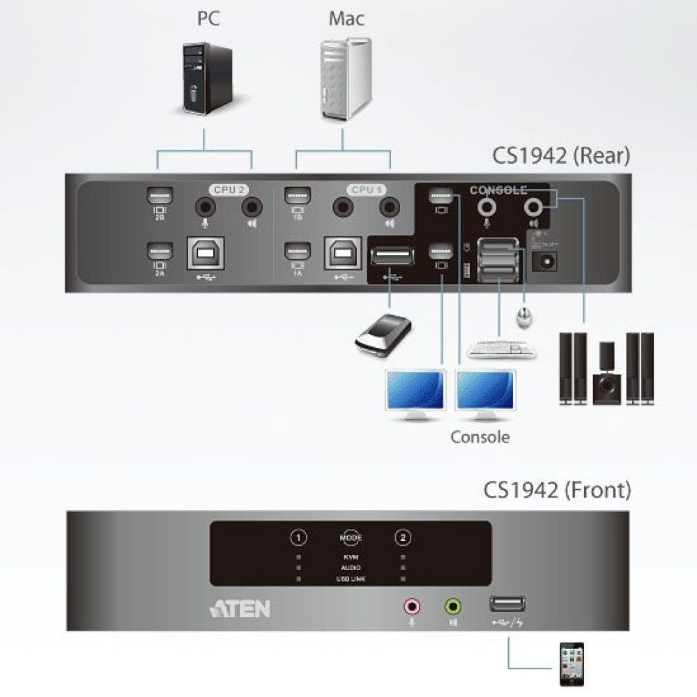 Il CS1942 è l’ideale per le applicazioni multimediali e offre il massimo in termini di risparmio di spazio e tecnologia KVM da scrivania.