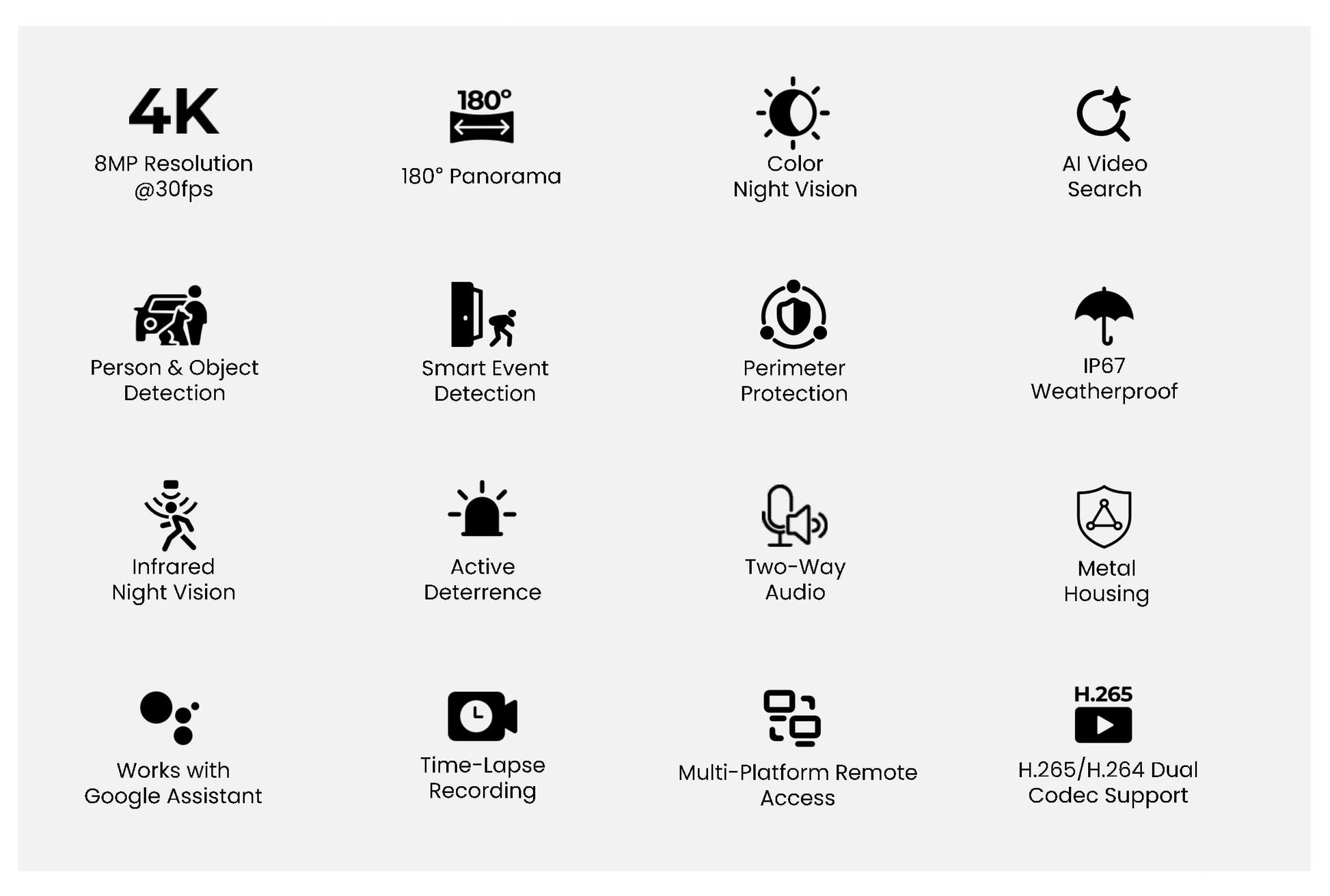 Telecamera Smart PoE 4K Doppio Obiettivo a 180° Visione Notturna a Colori, PCT8MD