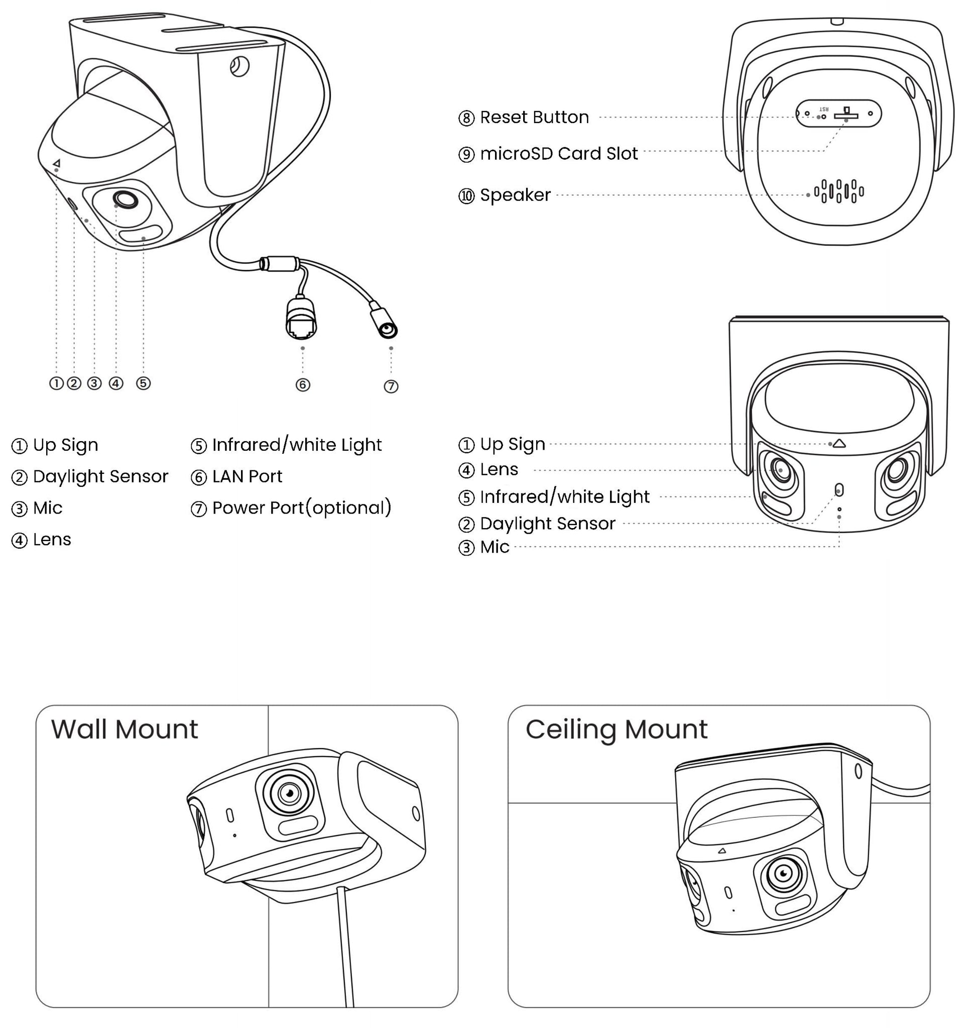 - Telecamera Smart PoE 4K con doppia lente a 180° visione notturna a colori, ICR-RP-PCT8MD
