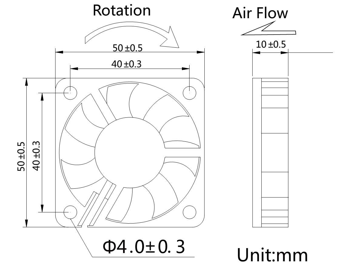 VENTOLA 50X50X10 12 VOLT CONNETTORE 3 FILI CON VITI INCLUSE